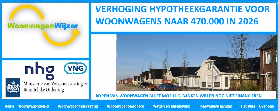 Dat betekent dat met ingang van 2026 er geen aparte bedragen meer gelden voor de woonwagen ( in 2025: 172.000) en de standplaats ( in 2025: 61.000). In 2026 is de maximale hypotheekgarantie van 470.000 euro voor woning (+grond) ook van toepassing op een woonwagen (+ standplaats).