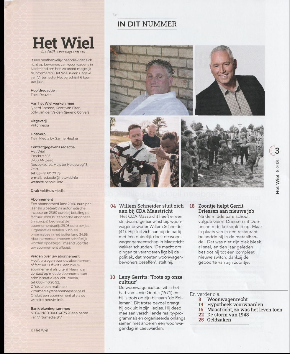Het bestuur van Stichting Woonwagennieuws bestaande uit Sjoerd Jaasma, Jan Willem Dingemanse en Bram van Duinen heeft de lezers van Het Wiel geïnformeerd over een aantal ontwikkelingen die te maken hebben met de uitgave van dit blad. De Stichting is dertig jaar geleden opgericht en was tot voor kort de uitgever van Het Wiel.